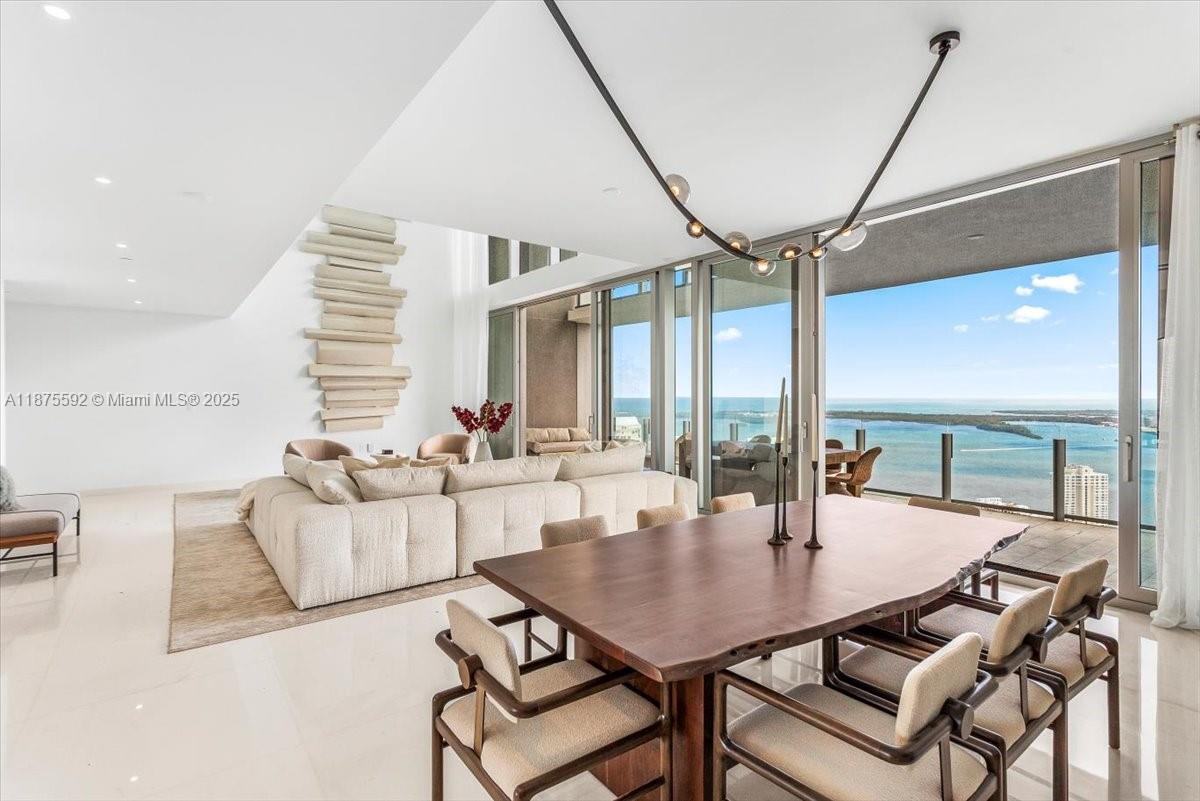 Aston Martin Residences Unit #5002 Sky Villa 5002: The highest & largest Sky residence at Aston Martin Miami. 1 of only 3 duplexes in the entire building. Double-height ceilings & windows offer unmatched turquoise water views and the iconic Brickell skyline. This nearly 5,000 total SqFt flow-through residence boasts 5 beds + den, 5.5 baths, 2 massive terraces, and includes a brand-new Aston Martin DBX. This isn’t just a residence; it’s a statement of opulence. AM offers over42,000 SF of world-class amenities: private marina; sky deck with pools; fitness center with spinning & boxing rooms; luxury spa with sauna, meditation room, beauty salon, & barbershop; two movie theaters; indoor pool; golf simulator; business center & more. Step outside to explore Downtown Miami & Brickell. Live in a rare masterpiece of luxury design.