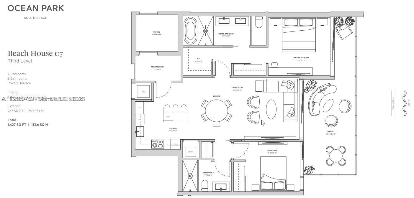 OCEAN BEACH FLA SUB PB 2-38 LOT 7 LESS E12FT BLK 4 LOT SIZE 50.00 X 118 COC 26186-4962 01 2008 2 Refined coastal living in South of Fifth’s most exclusive boutique building. Completed in 2023, Residence 302 at Ocean Park South Beach is a standout home within an intimate collection of only 10 luxury residences. Designed for effortless elegance, enjoy a private outdoor sanctuary featuring a 36’ resort-style pool, spa Jacuzzi, summer kitchen, yoga deck, and open-air fitness space. This 2BR/2BA residence offers 10’ ceilings, floor-to-ceiling windows, a Poliform® kitchen with Wolf/Sub-Zero® appliances, wide-plank oak flooring, spa-like marble baths, and private elevator entry. Ideally positioned on Ocean Drive, directly across from the beach and South Pointe Park—where privacy, design, and lifestyle converge.