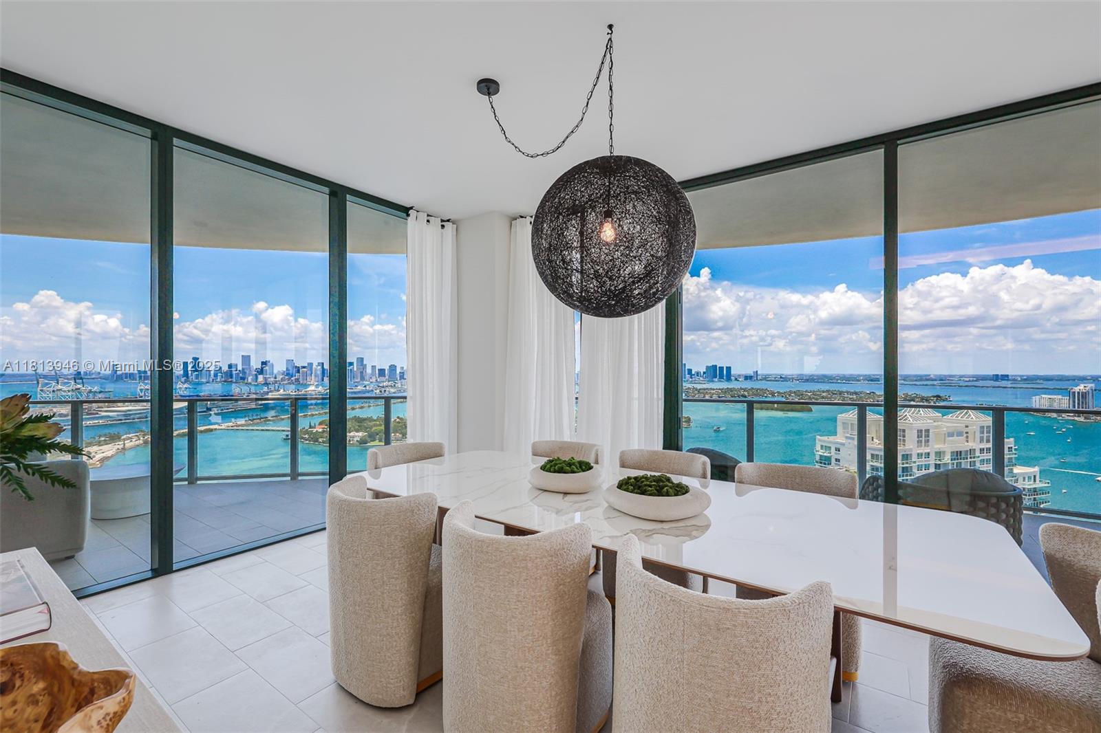 This unit features top-of-the-line custom doors, premium closet cabinetry, and a tastefully enclosed den — perfect as an office or guest room. Enjoy breathtaking views of the ocean, bay, and full Miami skyline from every room. Includes two side-by-side assigned parking spots plus one valet.